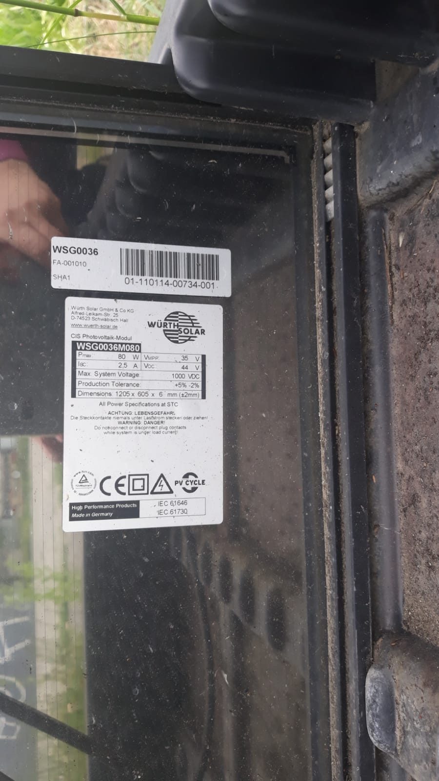 Stoc panouri fotovoltaice amorfe Wűrth Solar WSG0036M080 - Vânzare directa